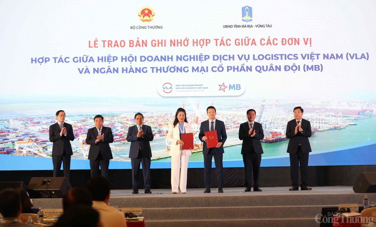 | Thủ tướng Chính phủ Phạm Minh Chính, Bộ trưởng Bộ Công Thương Nguyễn Hồng Diên cùng các đại biểu chứng kiến Lễ trao biên bản và ghi nhớ hợp tác giữa Hiệp hội doanh nghiệp dịch vụ Logistics Việt Nam và Ngân hàng TMCP Quân đội. |