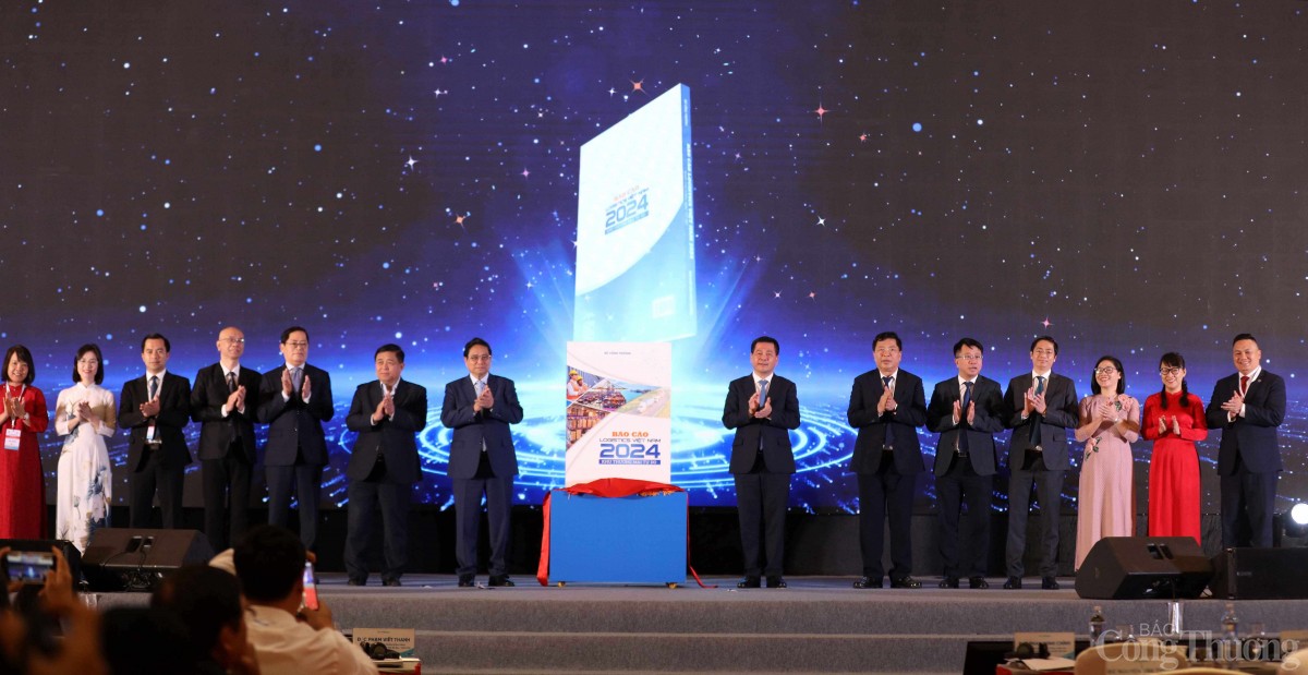 | Cũng trong khuôn khổ Diễn đàn, Thủ tướng Chính phủ Phạm Minh Chính, Bộ trưởng Bộ Công Thương Nguyễn Hồng Diên cùng các đại biểu công bố Báo cáo Logistics Việt Nam 2024. Ảnh: Sỹ Đồng |
