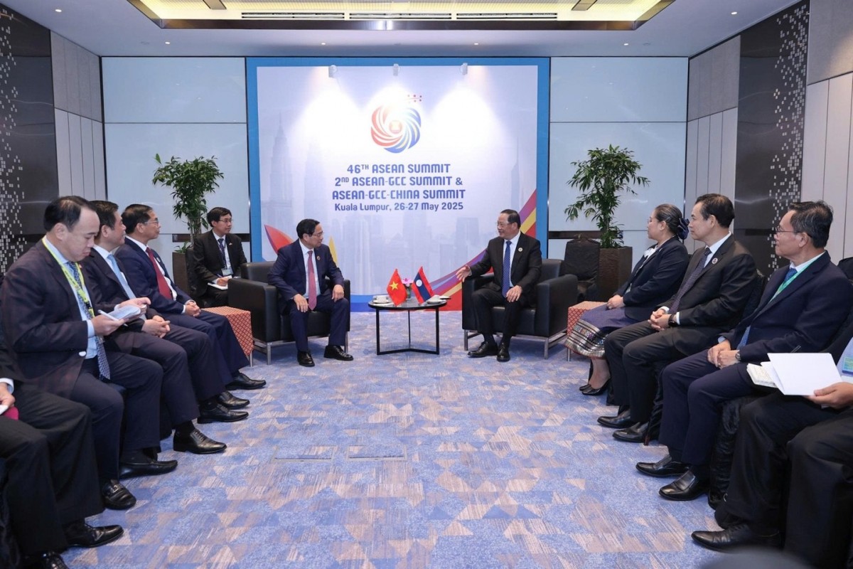 Tại buổi tiếp xúc song phương giữa Thủ tướng Phạm Minh Chính và Thủ tướng Lào Sonexay Siphandone vào chiều ngày 26/5 tại Trung tâm Hội nghị KLCC Kuala Lumpur, hai Thủ tướng thống nhất sẽ tích cực phối hợp, trao đổi để triển khai có hiệu quả những dự án quan trọng giúp kết nối hai nền kinh tế về giao thông, cơ sở hạ tầng, thương mại, nguồn nhân lực, chuỗi cung ứng trong đó tiếp tục thúc đẩy triển khai hai dự án kết nối giao thông quan trọng là đường cao tốc Hà Nội - Viêng Chăn, đường sắt Viêng Chăn - Vũng Áng.
