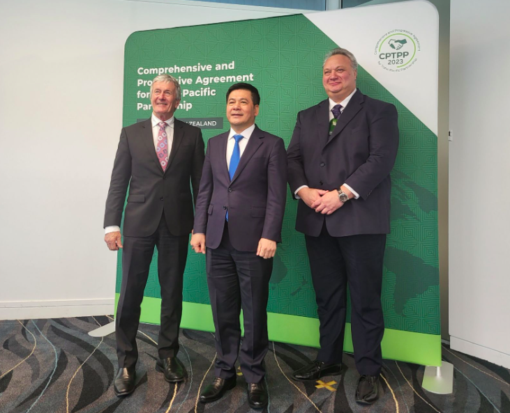 Bên lề Hội nghị Bộ trưởng Thương mại của các thành viên Hiệp định Đối tác Toàn diện và Tiến bộ xuyên Thái Bình Dương (CPTPP) tại Auckland, New Zealand, ngày 16/7/2023, Bộ trưởng Bộ Công Thương Nguyễn Hồng Diên đã có buổi làm việc với ông Damien O'Connor, Bộ trưởng Thương mại, Tăng trưởng Xuất khẩu New Zealand.