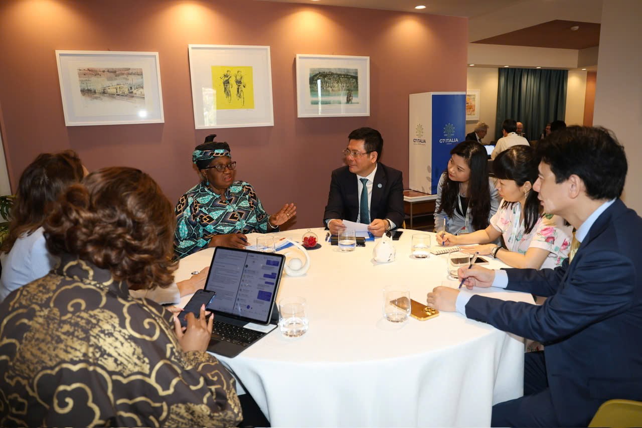 Ngày 16/7, tại Italia, bên lề Hội nghị Bộ trưởng Thương mại G7 mở rộng, Bộ trưởng Nguyễn Hồng Diên đã tiếp bà Ngozi Okonjo Iweala - Tổng giám đốc WTO.