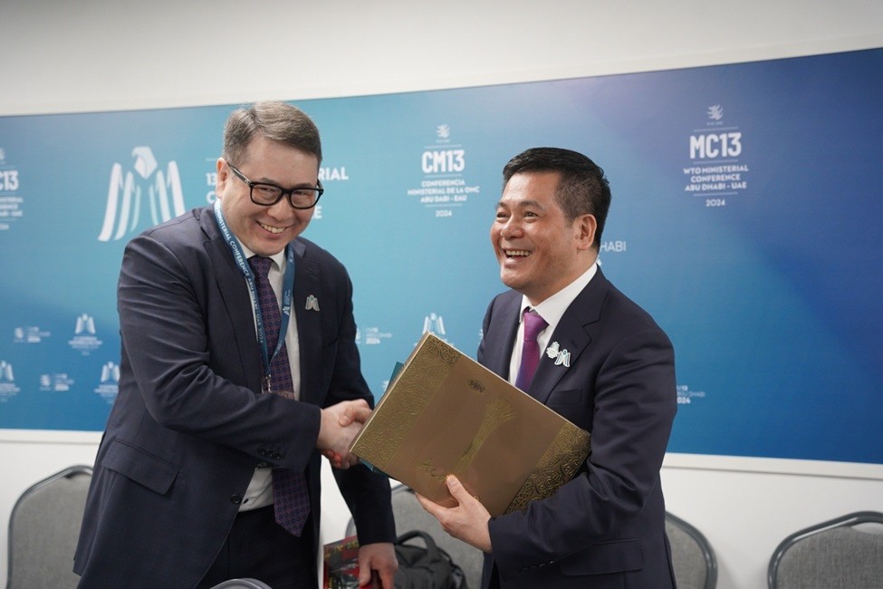 Ngày 27/2, bên lề Hội nghị Bộ trưởng WTO lần thứ 13 tại UAE, Bộ trưởng Bộ Công Thương Nguyễn Hồng Diên đã tiếp và làm việc song phương với ngài Arman Shakkaliyev, Bộ trưởng Thương mại và Hội nhập Kazakhstan. Hai Bộ trưởng đã trao đổi về việc triển khai Kế hoạch hành động chung về thúc đẩy hợp tác kinh tế - thương mại giữa Việt Nam và Kazakhstan giai đoạn 2023-2025. Theo đó, hai bên thống nhất tiếp tục phối hợp chặt chẽ cùng các Bộ, ngành, tổ chức có liên quan của hai Bên để triển khai hiệu quả Kế hoạch hành động nhằm thúc đẩy hợp tác song phương giữa Việt Nam và Kazakhstan trong lĩnh vực kinh tế - thương mại.