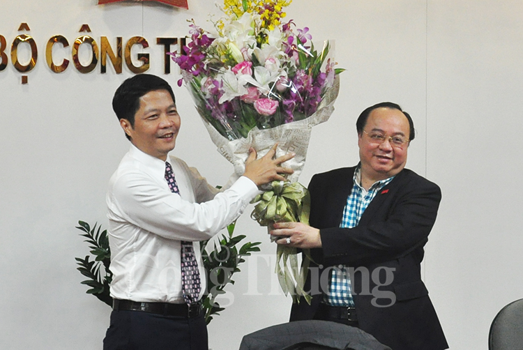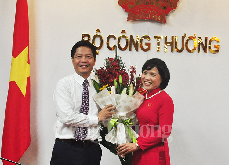 | Nữ đại biểu Quốc hội ngành Công Thương tặng hoa chúc mừng Bộ trưởng Trần Tuấn Anh |