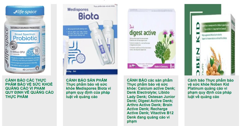 Đáng nói, trong số gần 20 loại thực phẩm bảo vệ sức khỏe vi phạm quy định quảng cáo được Cục An toàn thực phẩm cảnh báo có nhiều sản phẩm quen thuộc, chủ yếu là các sản phẩm men vi sinh được quảng cáo duy trì sức khỏe hệ miễn dịch, hỗ trợ hệ vi sinh vật đường ruột...