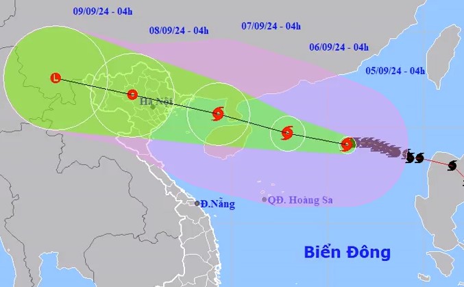 Hồi 7h ngày 5/9, vị trí tâm bão ở trên vùng biển phía Bắc khu vực Bắc Biển Đông, cách đảo Hải Nam (Trung Quốc) khoảng 520km về phía Đông; sức gió mạnh nhất vùng gần tâm bão mạnh cấp 15 (167 - 183km/h), giật trên cấp 17; bão di chuyển theo hướng Tây, tốc độ khoảng 10km/h, khả năng bão sẽ đổ bộ với cường độ rất mạnh và ảnh hưởng trực tiếp đến vùng biển và đất liền khu vực Bắc Bộ và Bắc Trung Bộ.