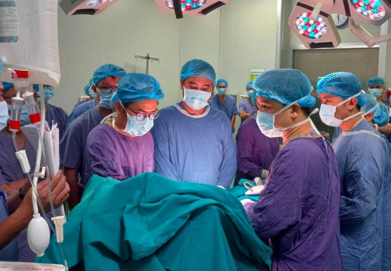 | Thầy thuốc Bệnh viện Việt Đức chuẩn bị lấy tạng hiến của bệnh nhân T. (ảnh: BVCC) |