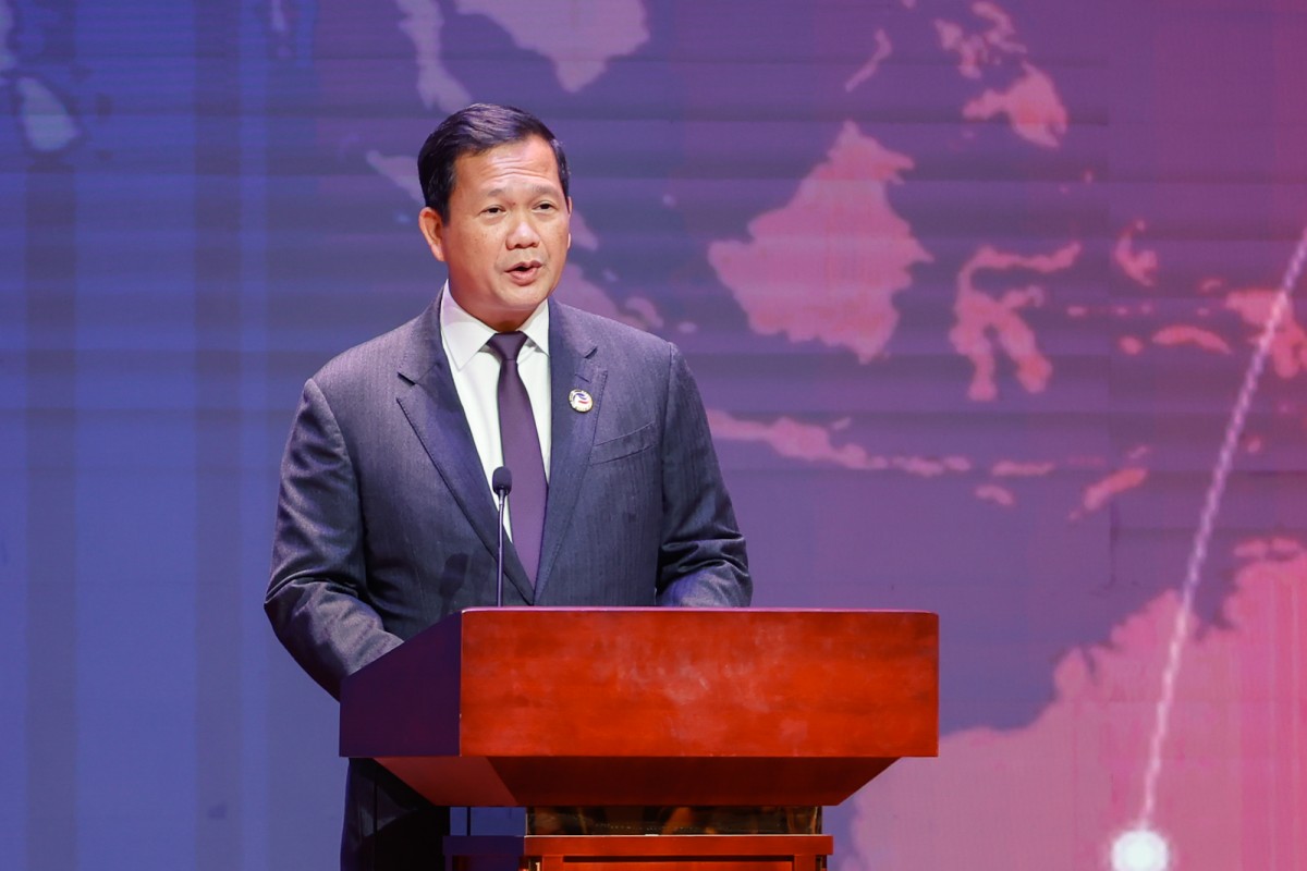 | Thủ tướng Campuchia Hun Manet phát biểu tại cuộc ăn sáng giao lưu đặc biệt giữa 3 Thủ tướng Việt Nam - Lào – Campuchia với Hội đồng Tư vấn kinh doanh ASEAN - Ảnh: VGP/Nhật Bắc |