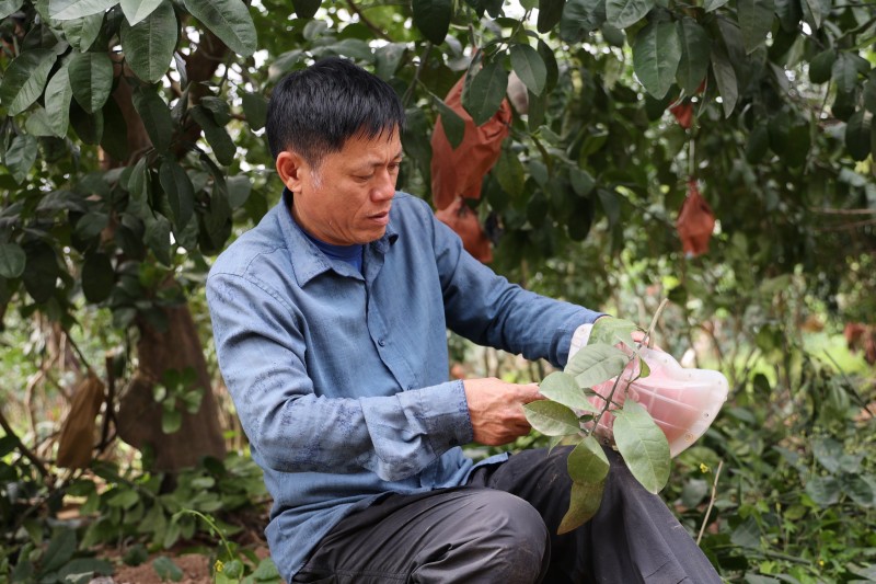 | Theo ông Lương Văn Phương, việc tạo hình chữ Tài - Lộc cho bưởi đỏ đã giúp nâng cao giá trị quả bưởi. |