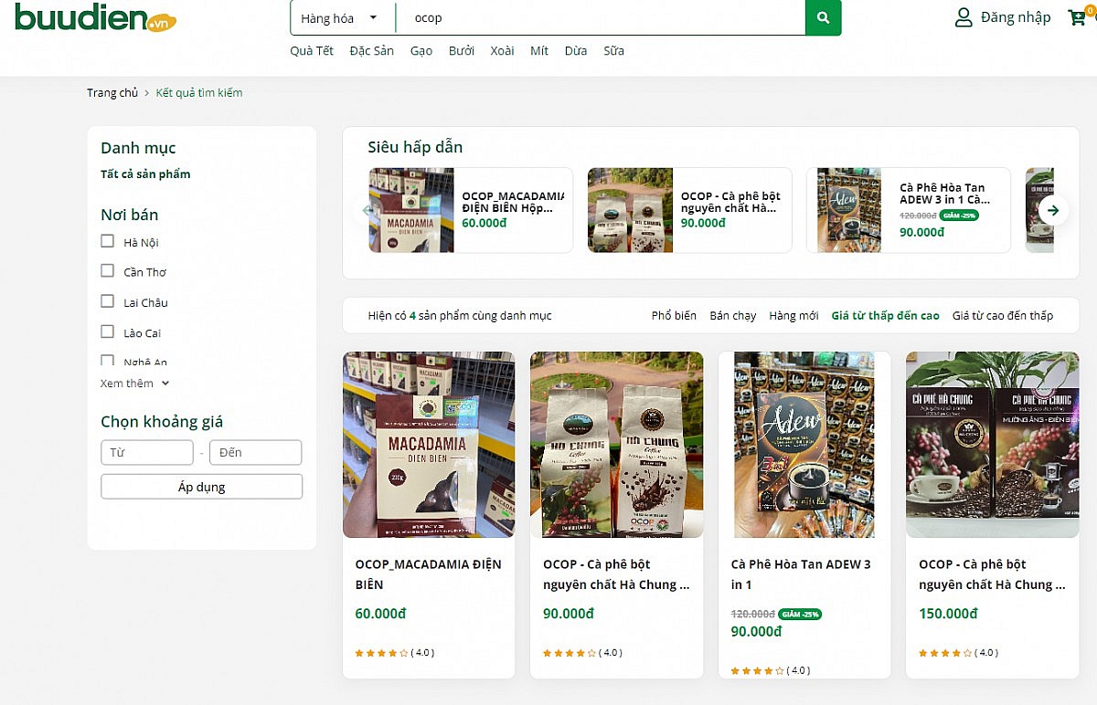 Bên cạnh đó, Bưu điện tỉnh đã hơn 40 sản phẩm đạt chuẩn OCOP của tỉnh lên sàn thương mại điện tử Buudien.vn. Việc ứng dụng nền tảng số để giới thiệu, tiêu thụ nông sản Điện Biên được các doanh nghiệp, hợp tác xã, hộ sản xuất kinh doanh thực hiện khá hiệu quả thời gian qua. Hoạt động quảng bá, kết nối, tiêu thụ sản phẩm nông nghiệp đặc sản của địa phương thông qua các nền tảng số là giải pháp quan trọng giúp doanh nghiệp, hợp tác xã, hộ sản xuất kinh doanh phát triển thương hiệu, thị trường.