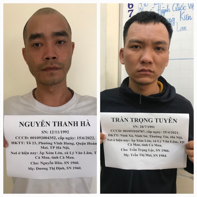 Các nghi phạm bao gồm: nhóm Nguyễn Thanh Hà (31 tuổi,) Trần Trọng Tuyên (32 tuổi), cả 2 đều ngụ TP Hà Nội và nhóm thứ hai gồm: Lê Xuân Thống (21 tuổi) và Lê Văn Cung (31 tuổi), cả 2 đều ngụ tỉnh Thanh Hóa.