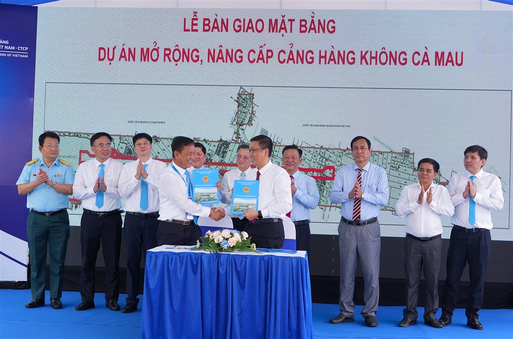 Lễ ký kết bàn giao mặt bằng giữa UBND thành phố Cà Mau và ACV. Ảnh: UBND tỉnh Cà Mau |