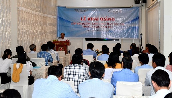 Sáng ngày 14/12/2022, Ban Dân tộc tỉnh Cà Mau phối hợp với Học viện dân tộc khai giảng lớp tập huấn bồi dưỡng kiến thức dân tộc đối với cán bộ, công chức, viên chức thuộc nhóm đối tượng 3 và đối tượng 4 trên địa bàn tỉnh năm 2022.