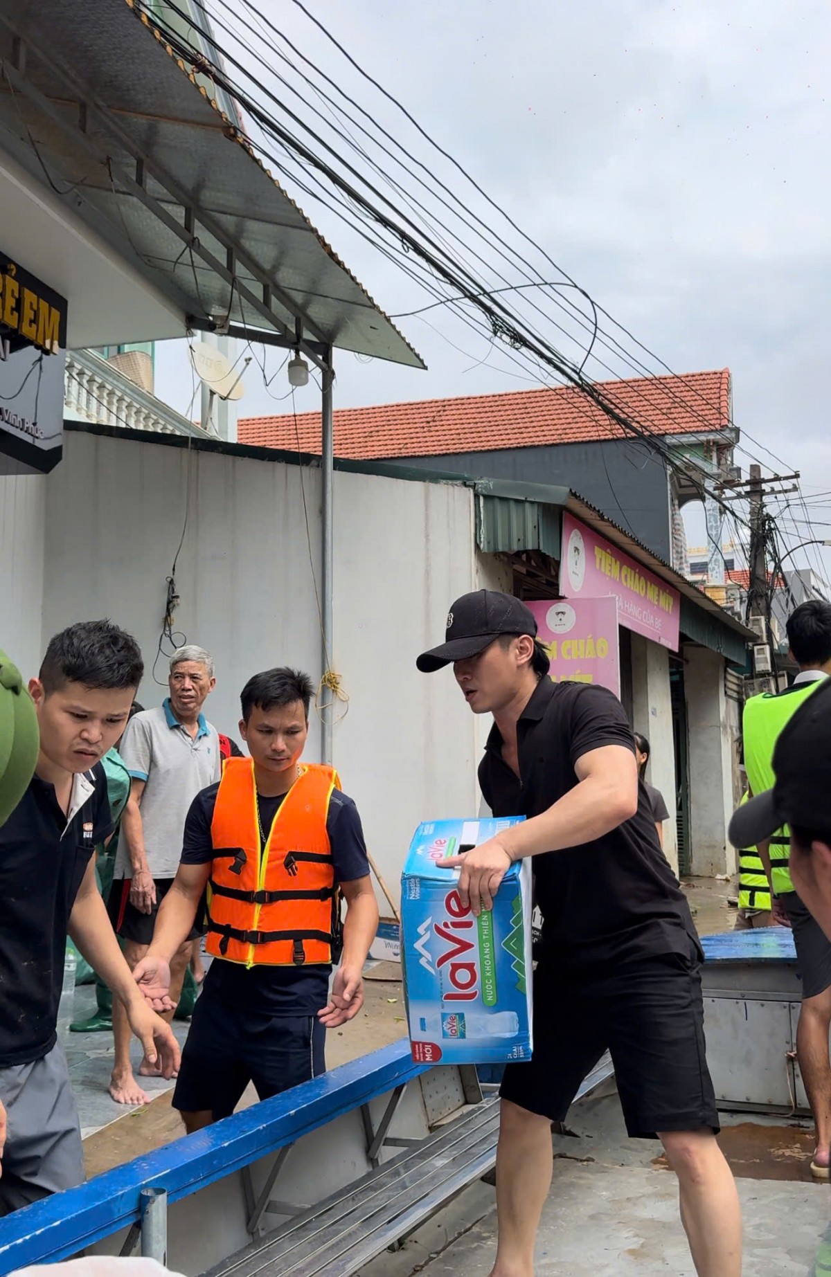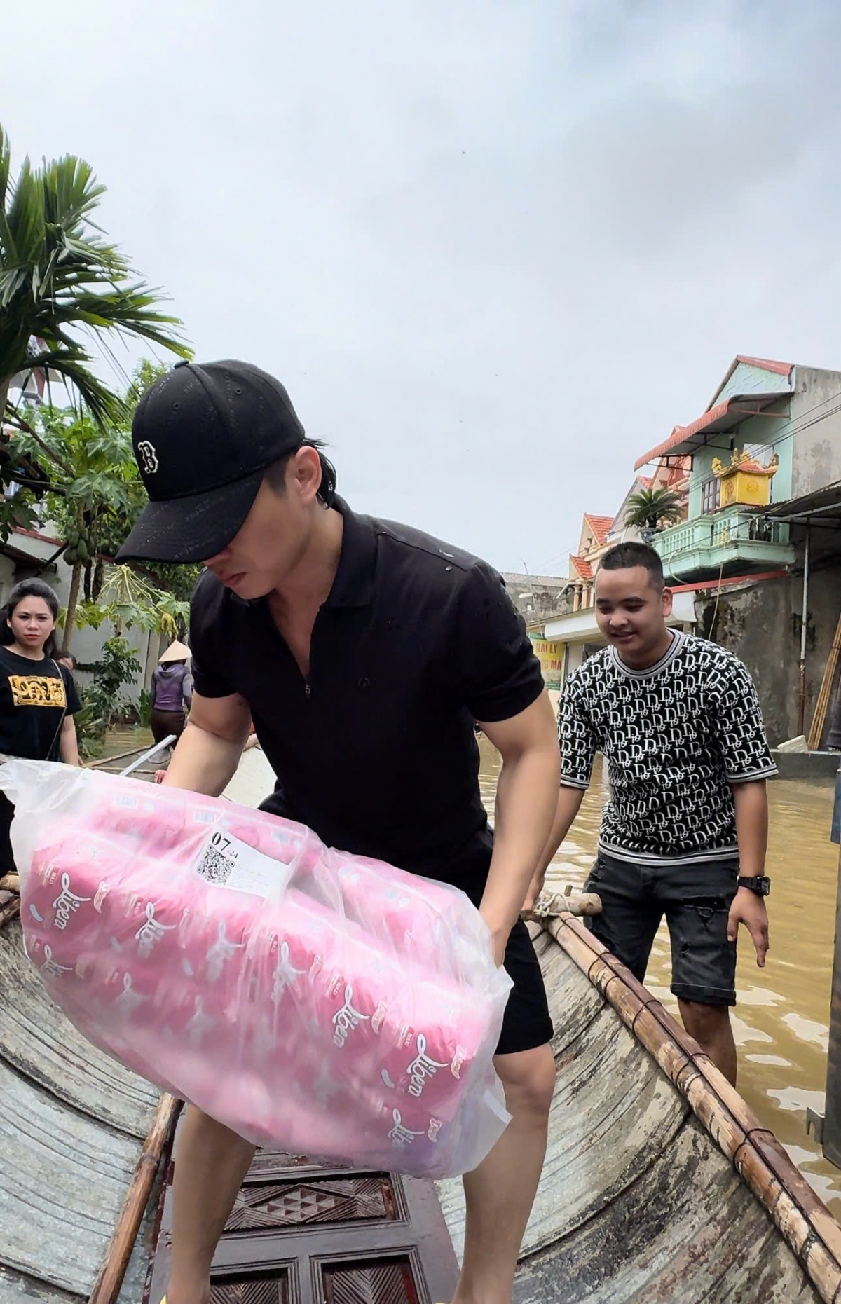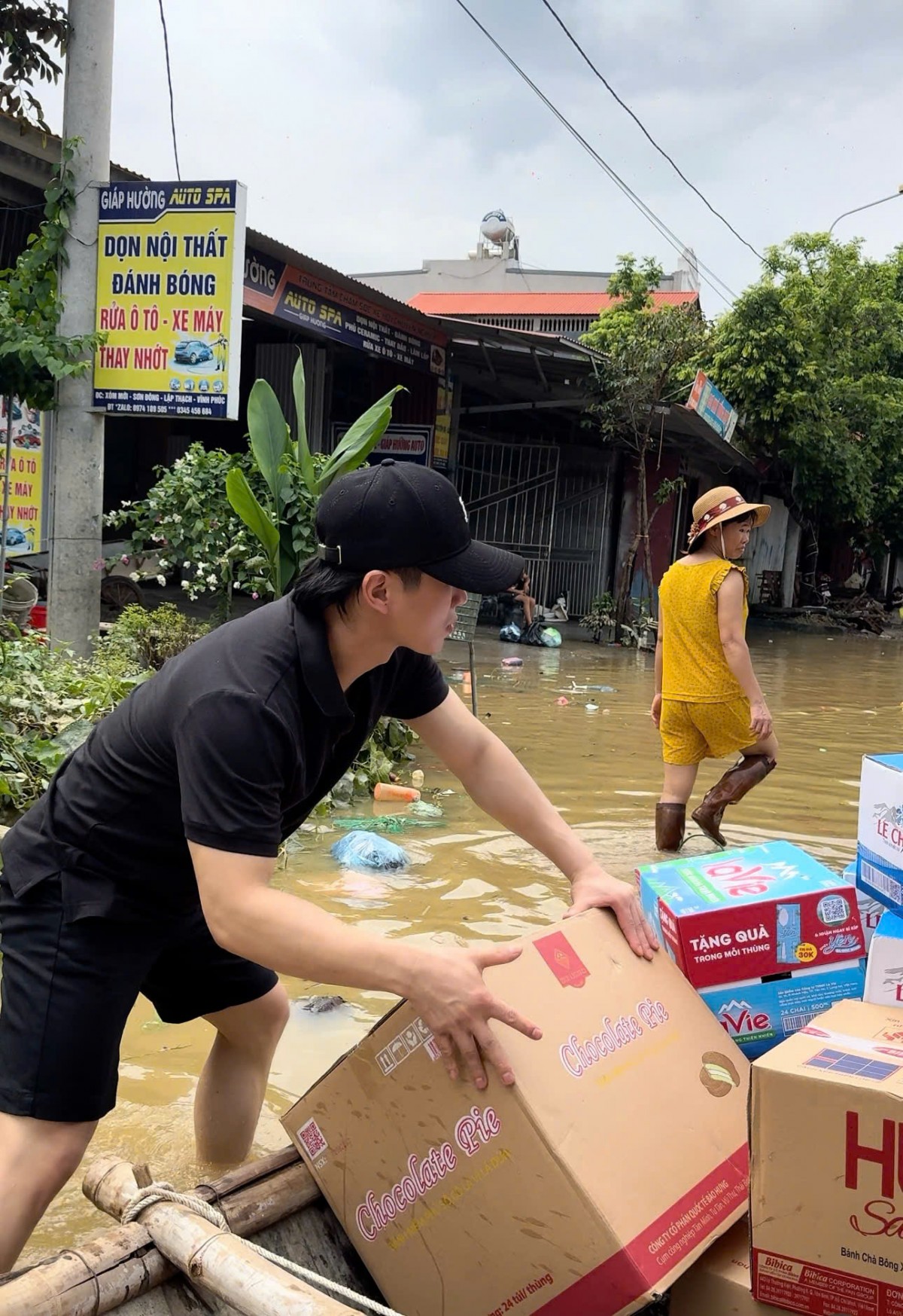 | Ca sĩ Du Thiên trực tiếp có mặt tại vùng lũ (Ảnh: NVCC) |