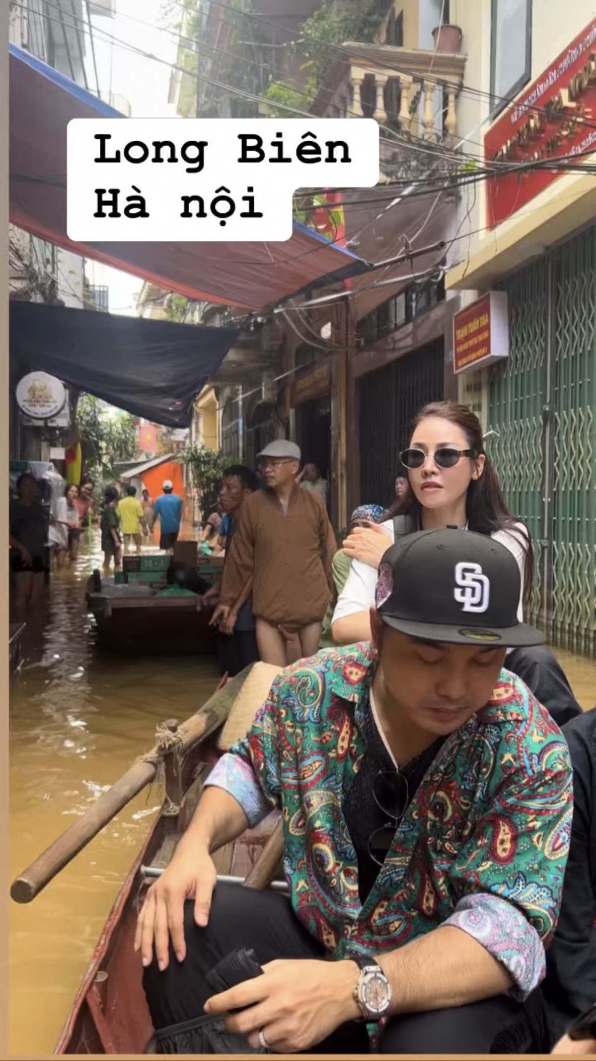 Bên cạnh đó, khi đi cứu trợ, thay vì trang bị những đồ bảo hộ đảm bảo an toàn, ca sĩ Quế Vân, vợ chồng ca sĩ Ưng Hoàng Phúc mang theo kính râm, chiếc áo hàng hiệu, chỉ ra rằng họ không sẵn sàng bị ướt quần áo, hay lăn xả tới cứu hỗ trợ người dân chịu thiệt hại.