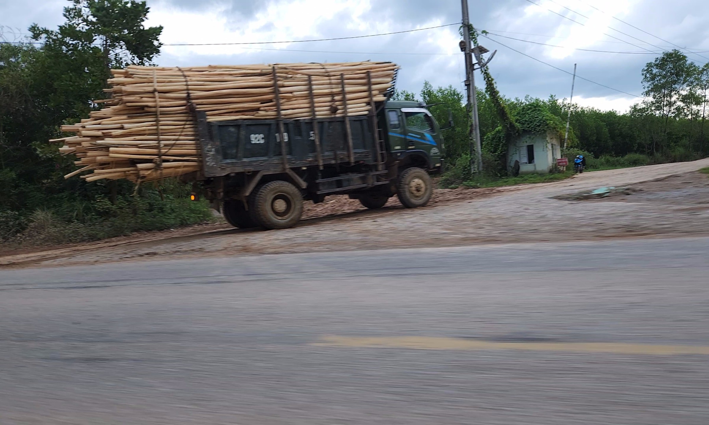 | Xe chở gỗ tràm quá khổ, quá tải từ quốc lộ 15 vào một điểm thu mua trên địa bàn huyện Lệ Thủy. Ảnh: Minh Tân |