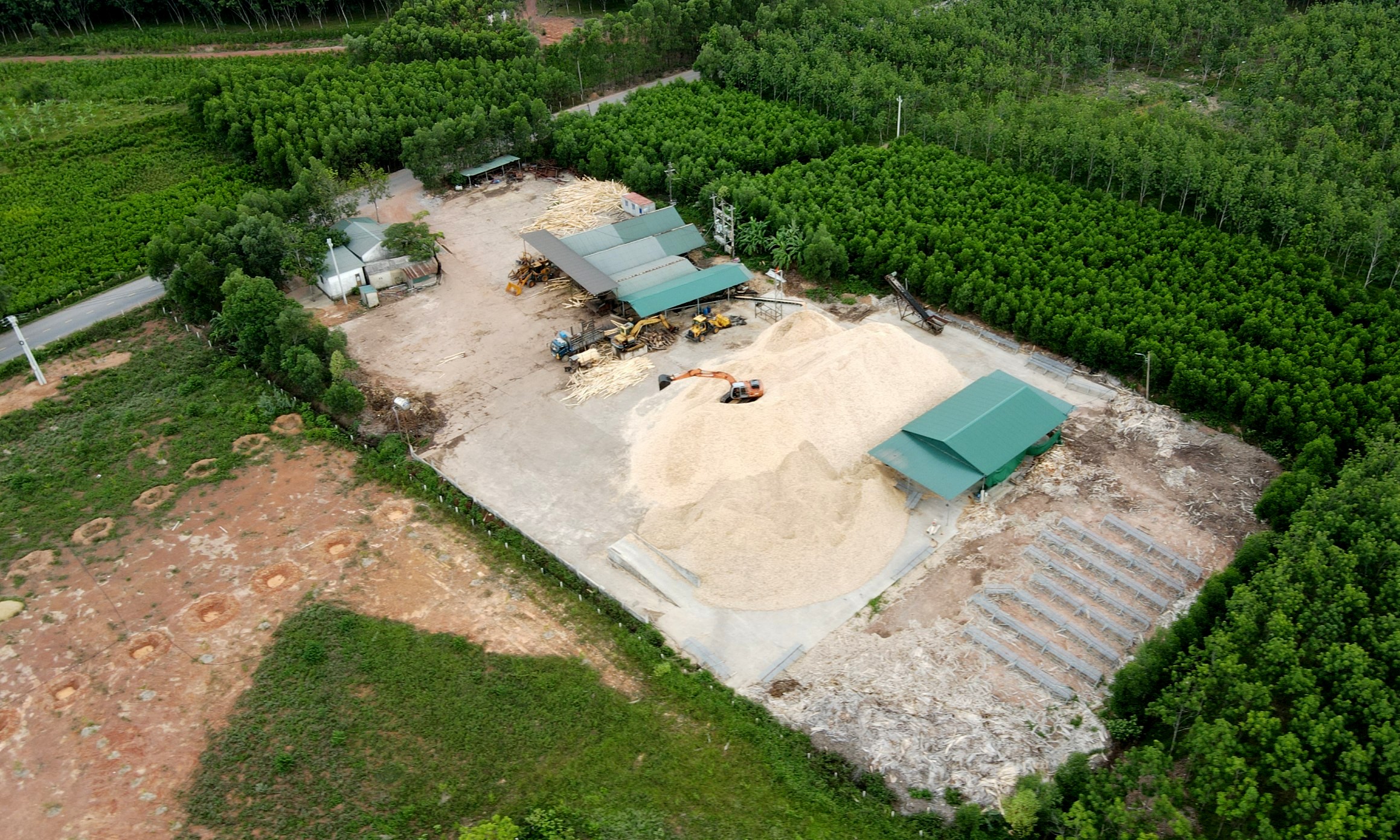 | Cơ sở thu mua gỗ rừng trồng sản xuất dăm trái phép trên địa bàn huyện Lệ Thủy. Ảnh: Minh Tân |