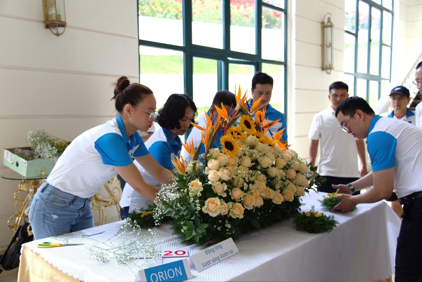 | Các đội tích cực cắm và trang trí lẵng hoa theo chủ đề PVTrans Vượt sóng Vươn xa |