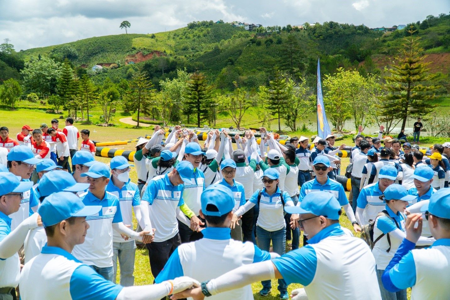 Tập thể PVTrans chụp hình lưu niệm sau khi hoàn thành các thử thách Team Building |