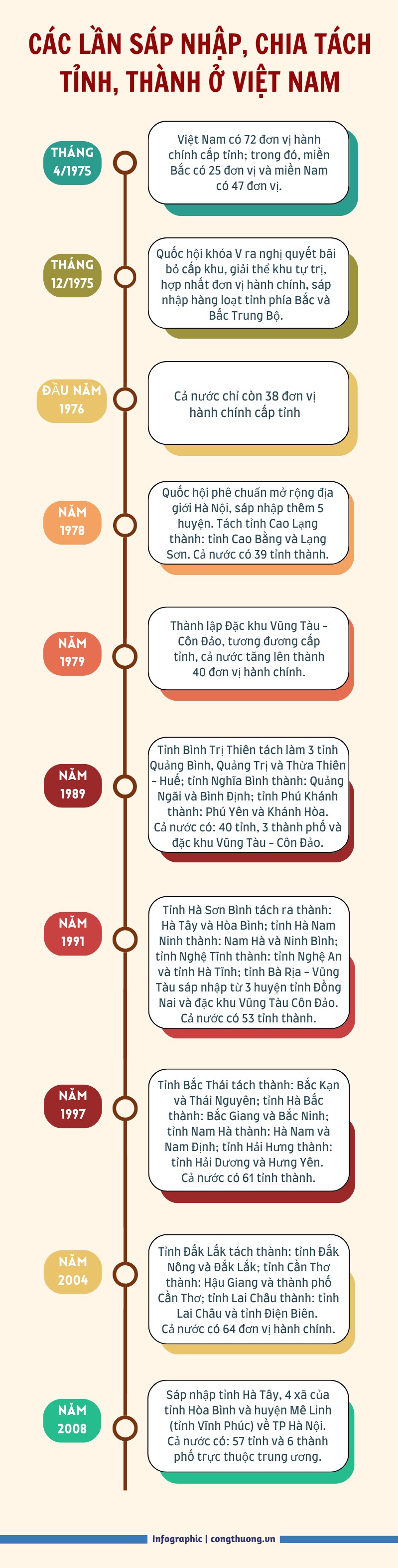 Cùng nhìn lại những lần sáp nhập, chia tách tỉnh, thành phố của Việt Nam từ khi thống nhất năm 1975 đến nay.