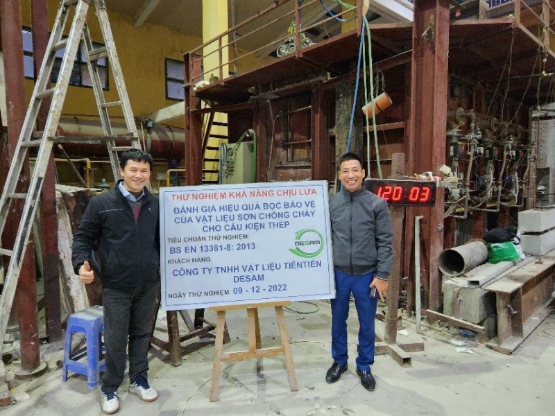 Theo đó, các nhà khoa học của Viện Vật liệu đã tiến hành thử nghiệm mẫu được thực hiện tại IBST theo tiêu chuẩn ISO 834-10:2014 vào đầu năm 2022. Trên cơ sở thử nghiệm thành công này, doanh nghiệp đối tác của Viện Khoa học vật liệu đã bắt đầu quá trình đăng ký và kiểm định chính thức sản phẩm sơn chống cháy bọc bảo vệ kết cấu thép với Cục cảnh sát phòng cháy, chữa cháy và cứu nạn cứu hộ, đáp ứng đúng yêu cầu của Nghị định 136 /2020-NĐ-CP ngày 24/11/2020 quy định chi tiết một số điều và biện pháp thi hành Luật Phòng cháy và chữa cháy và Luật sửa đổi, bổ sung một số điều của Luật Phòng cháy và chữa cháy.