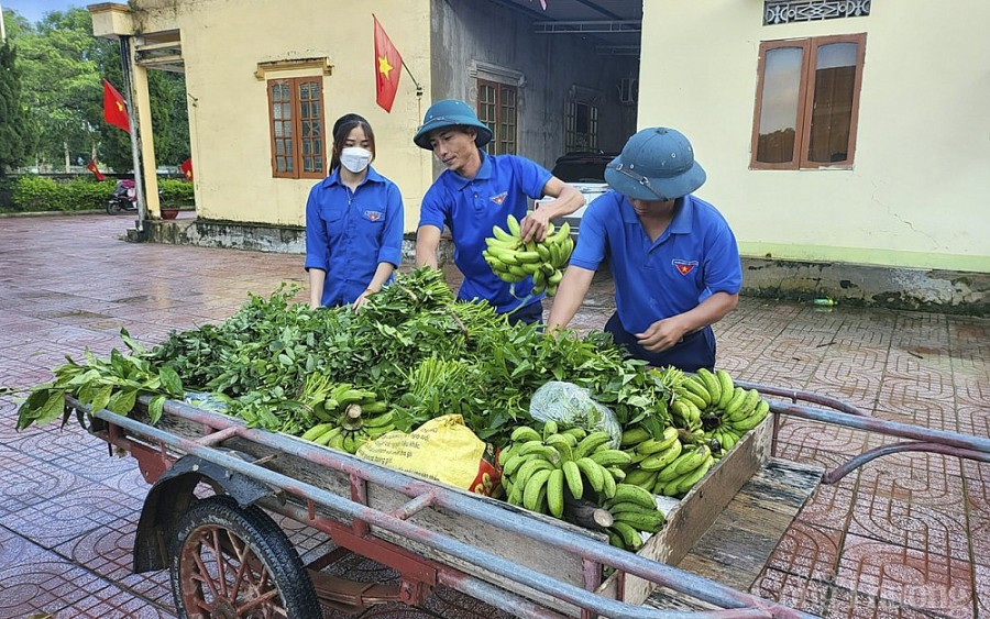 | Sau lũ rau xanh khan hiếm. (Trong ảnh: Đoàn Thanh niên xã Thanh Liên huyện Thanh Chương tổ chức quyên góp, ủng hộ người dân vùng bị cô lập) |