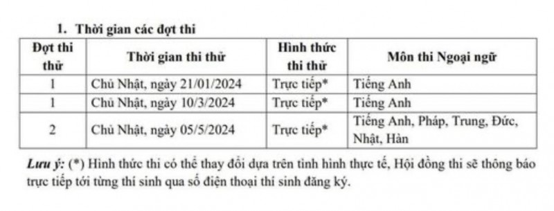 Thời gian thi trong 3 ngày 21/1, 10/3 và 5/5/2024, cụ thể như sau: