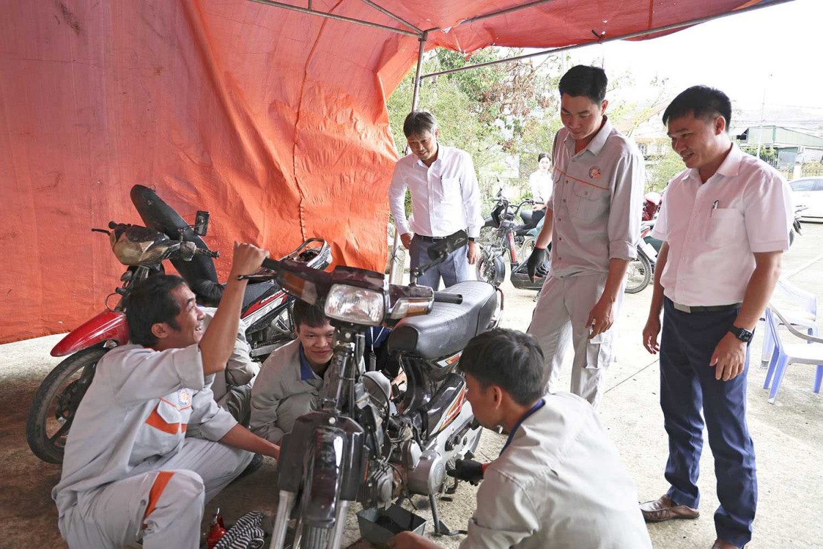 | Sửa chữa xe máy bị ngập nước giúp người dân. |