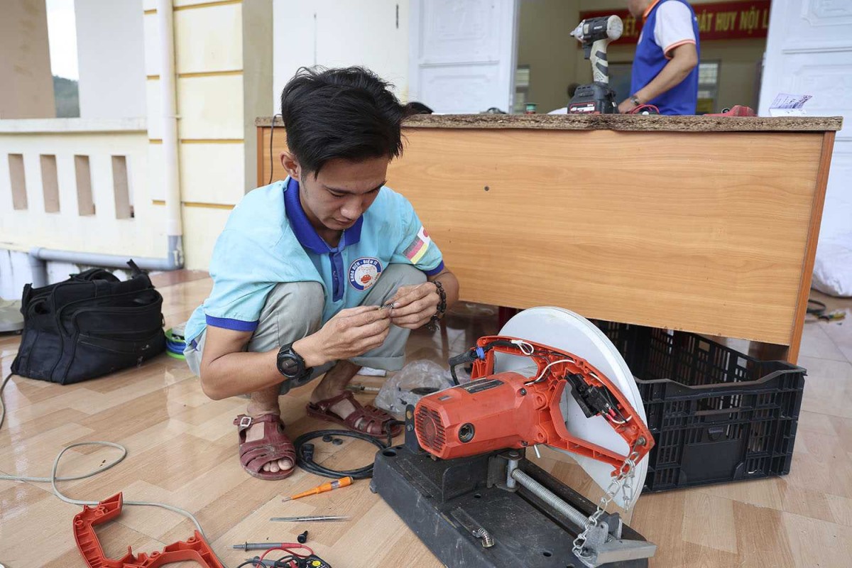 Phát huy chuyên môn và nghiệp vụ được đào tạo, đoàn tình nguyện đã chia thành các bộ phận tham gia sửa chữa các thiết bị như: Điện, điện lạnh, cơ khí… để phân loại, tiếp nhận và phân công nhân lực sửa chữa giúp người dân.