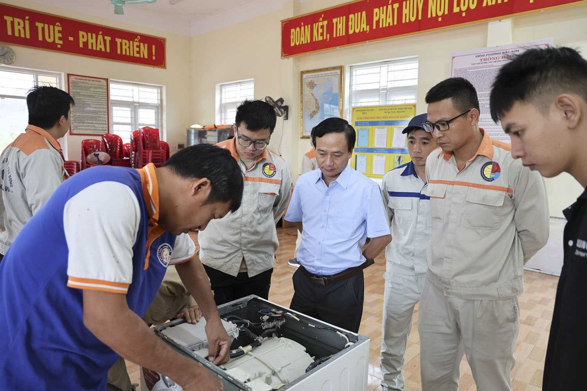 Ngoài điểm tiếp nhận và sửa chữa cố định tại nhà văn hóa khu 5, phường Bắc Sơn, đoàn tình nguyện còn cử các tổ lưu động đến các gia đình tại khu vực ngõ sâu, gia đình chính sách, gia đình người cao tuổi để hỗ trợ kiểm tra, sửa chữa thiết bị.
