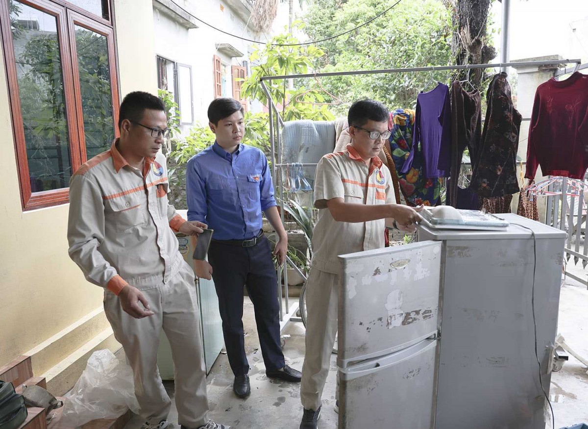 | Các tổ lưu động đến các gia đình tại khu vực ngõ sâu, gia đình chính sách, gia đình người cao tuổi để hỗ trợ kiểm tra, sửa chữa thiết bị giúp dân. |