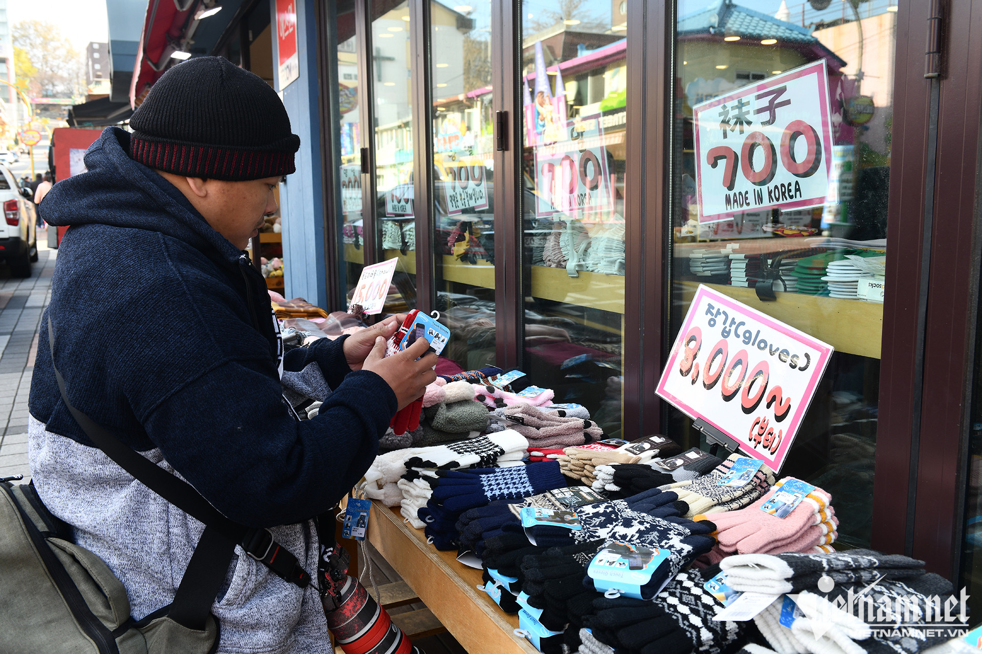 Seoul, Hàn Quốc. Cảnh tương tự tại thủ đô Seoul, Hàn Quốc, hàng hóa được bày ra bên ngoài nhưng trong phạm vi cho phép, lối dành cho người đi bộ luôn lớn hơn diện tích vỉa hè cho thuê.