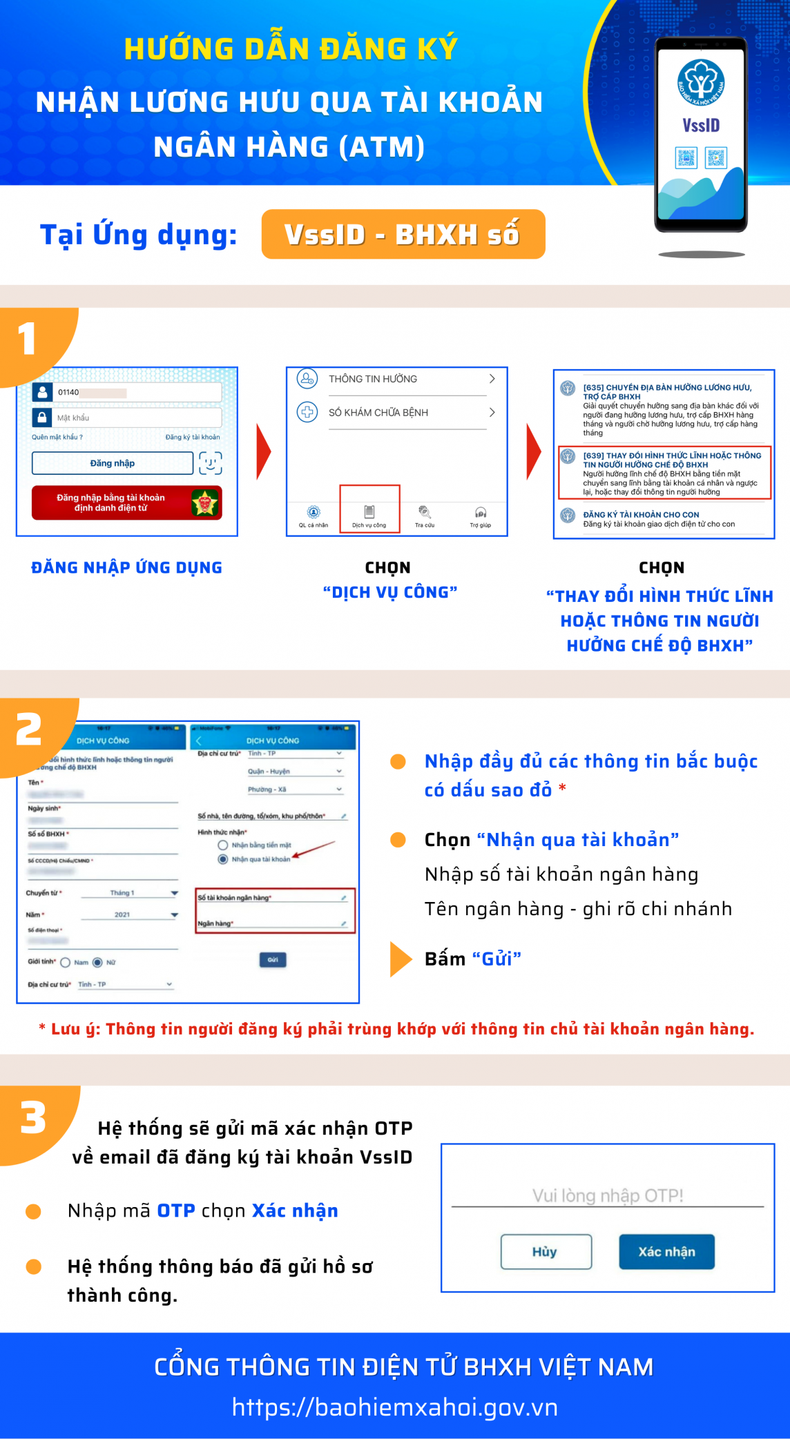 Theo hướng dẫn của Bảo hiểm Xã hội Việt Nam, người tham gia chính sách có thể thực hiện đăng ký nhận lương hưu qua tài khoản tại ứng dụng VssID- BHXH số, cụ thể sau: