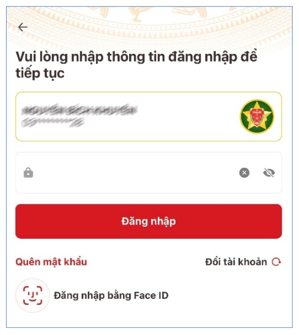 Bước 2: Tại màn hình đăng nhập ứng dụng VNeID, người tham gia đăng nhập bằng tài khoản định danh điện tử mức 2: