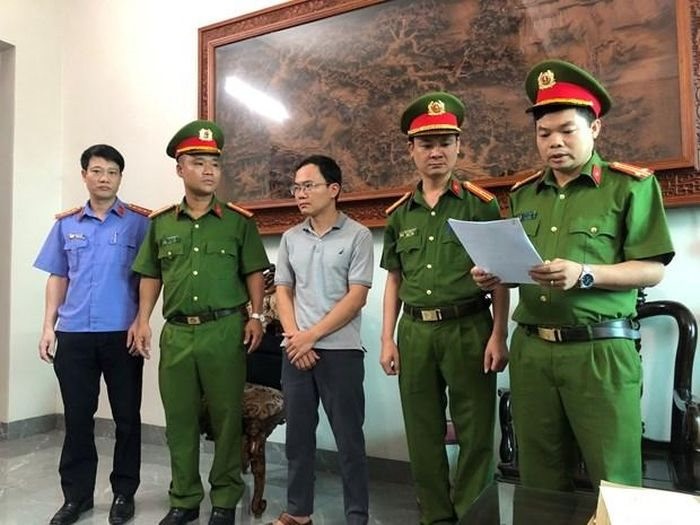 | Cơ quan Cảnh sát điều tra Công an tỉnh Hà Nam tống đạt Quyết định khởi tố bị can, Lệnh bắt bị can để tạm giam đối với Nguyễn Văn Tuấn. (Ảnh: CACC) |
