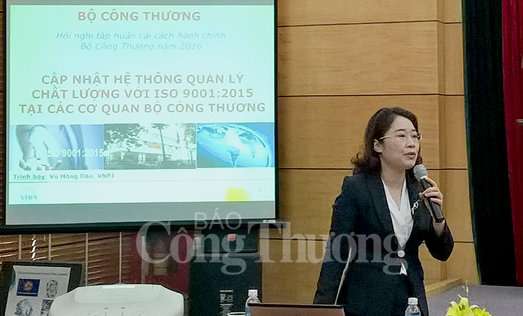 Được biết, Bộ Công Thương đã hoàn thành việc chuyển đổi Hệ thống quản lý chất lượng đối với Khối cơ quan Bộ từ phiên bản TCVN ISO 9001:2008 sang phiên bản ISO 9001:2015 và theo kế hoạch, các Tổng cục và Cục thuộc Bộ cũng sẽ chuyển đổi sang phiên bản mới trong năm 2017. Nhằm giới thiệu và trang bị những kiến thức cơ bản cho các đại biểu dự hội nghị để tiếp cận và ứng dụng thành công hệ thống này vào thực tế công việc, Thạc sỹ Vũ Hồng Dân - Trưởng phòng Tư vấn cải tiến năng suất, Viện Năng suất Việt Nam - đã trao đổi về “Các yêu cầu mới của tiêu chuẩn chất lượng TCVN 9001:2015 và cách thức cập nhật hệ thống quản lý chất lượng tại các đơn vị thuộc Bộ Công Thương”.