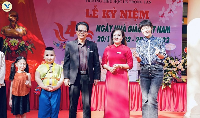 Thay mặt lãnh đạo nhà trường xin trân trọng cảm ơn Bà Vũ Thị Phượng - Giám đốc truyền thông MED GROUP, cảm ơn ông Vũ Trọng Hiếu – Đại diện lãnh đạo công ty xe đạp Thống Nhất, cảm ơn đạo diễn Nguyễn Love - cựu học sinh yêu quý mà tôi đã chủ nhiệm cách đây 28 năm, cảm ơn nghệ sĩ Nhân dân Trần Nhượng cùng đoàn diễn viên đã dành những tình cảm ấm áp cho thầy và trò trường trong buổi lễ tri ân đầy ý nghĩa này.