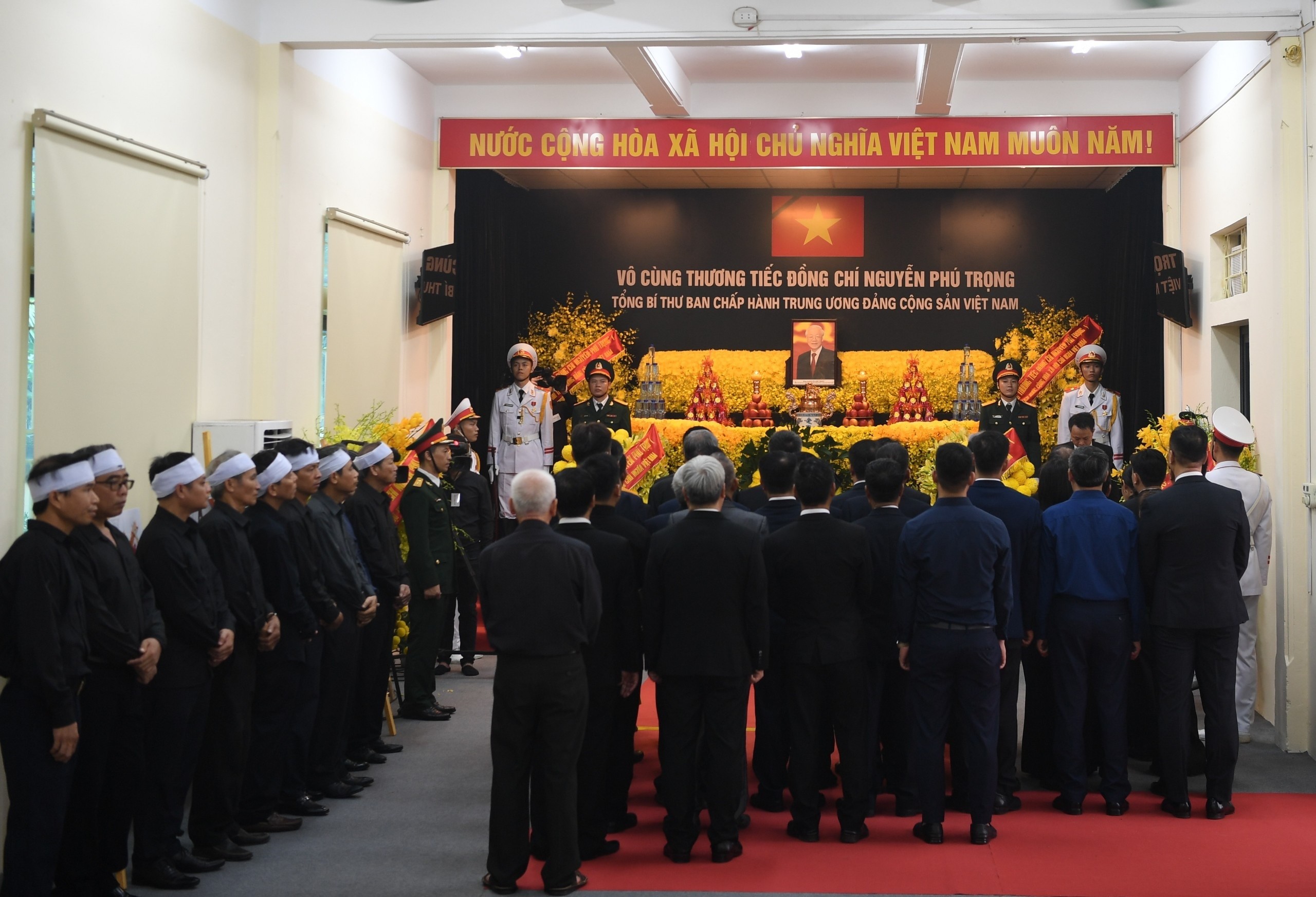 Lễ viếng Tổng Bí thư Nguyễn Phú Trọng được tổ chức tại Nhà tang lễ Quốc gia số 5 Trần Thánh Tông, Hà Nội, bắt đầu từ 7h - 22h ngày 25/7 và từ 7h - 13h ngày 26/7. Lễ truy điệu được tổ chức lúc 13h ngày 26/7, lễ an táng hồi 15h cùng ngày tại Nghĩa trang Mai Dịch, Hà Nội. Bên cạnh nhà tang lễ quốc gia, Lễ viếng Tổng Bí thư Nguyễn Phú Trọng còn được tổ chức trang trọng tại nhà riêng, quê hương thôn Lại Đà (Đông Anh - Hà Nội); tại Thành phố Hồ Chí Minh, các cơ quan đại diện Việt Nam tại nước ngoài. |