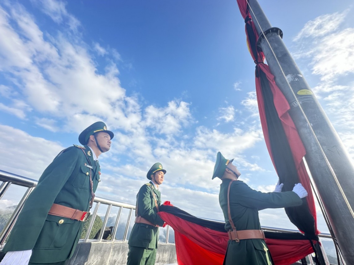 | Sáng nay, Đồn biên phòng Lũng Cú (Hà Giang) treo cờ rủ ngày Quốc tang (Ảnh: Hà Đô) |