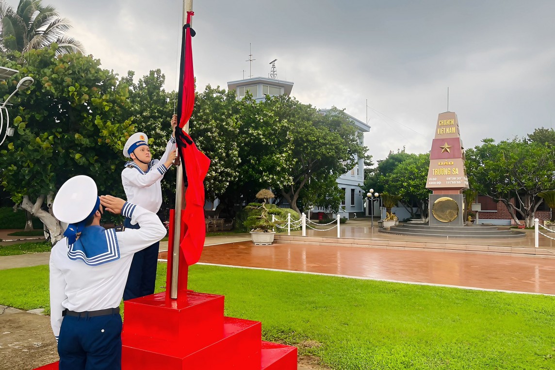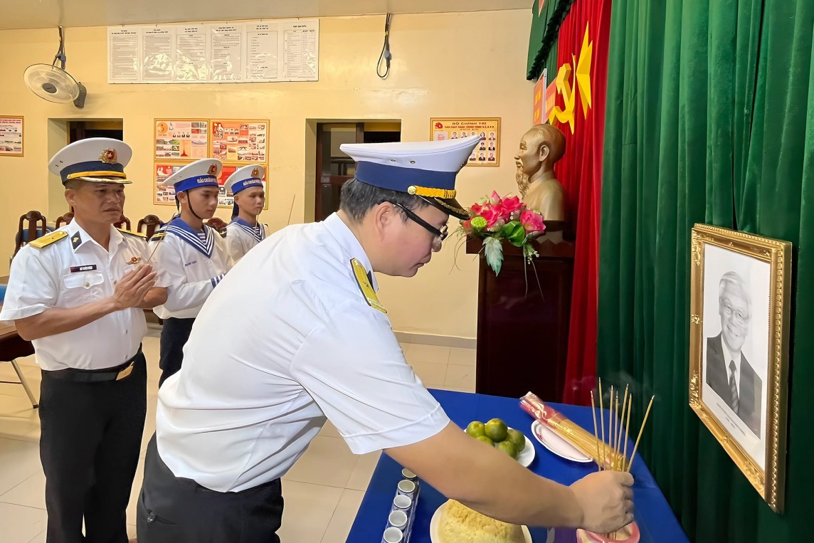 Đúng 6h ngày 25/7, cán bộ, chiến sĩ Hải quân ở các điểm, đảo trên huyện Trường Sa (tỉnh Khánh Hoà) và Nhà giàn DK1 đã làm lễ treo cờ rủ và tổ chức Lễ viếng Tổng Bí thư Nguyễn Phú Trọng.