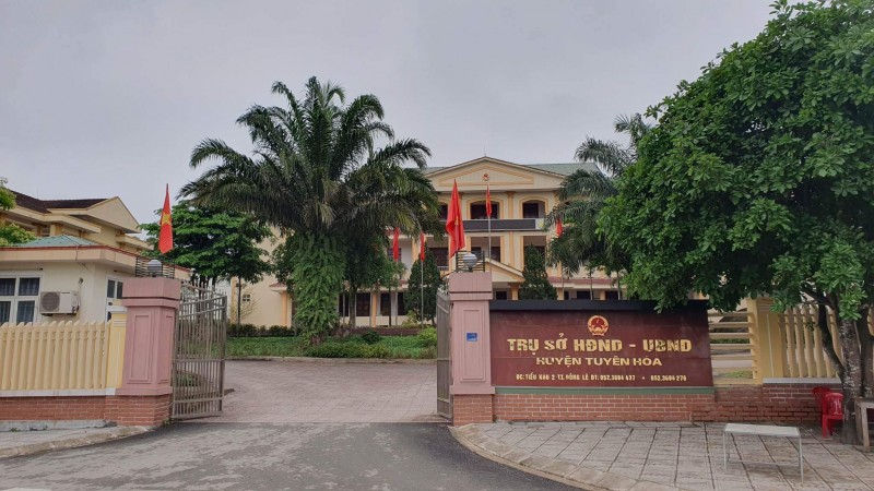 | Trụ sở UBND huyện Tuyên Hoá nơi bà Mai là cán bộ tư pháp bị tố cáo lừa đảo chiếm đoạt tài sản |