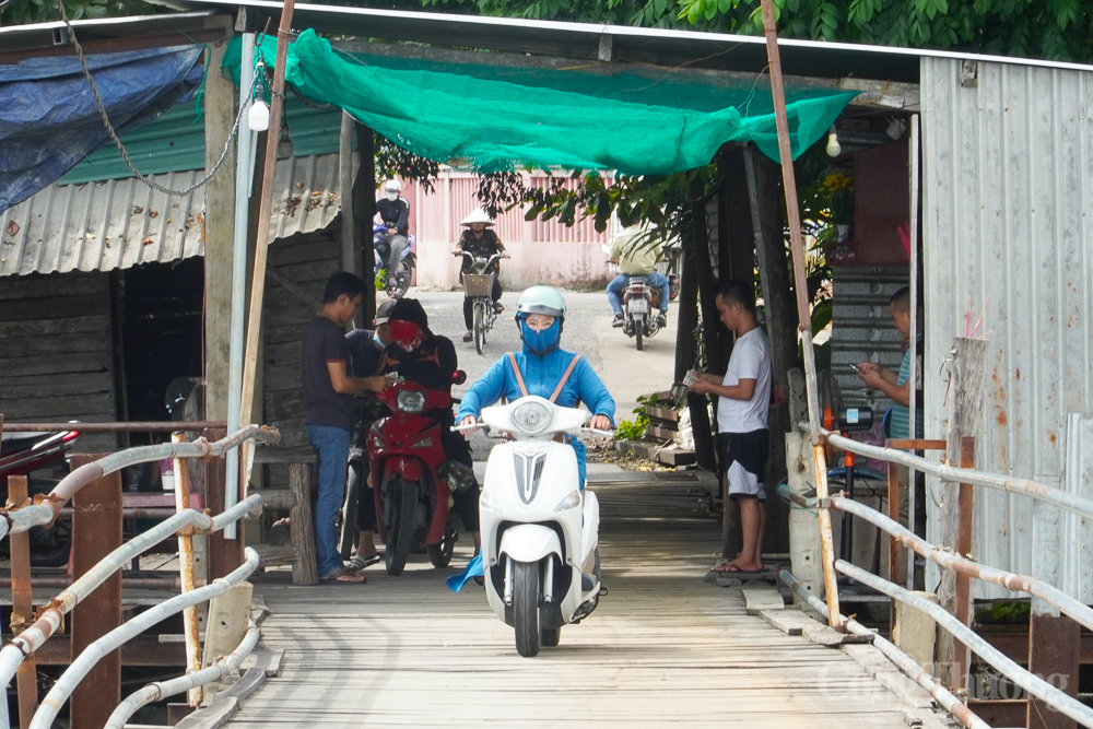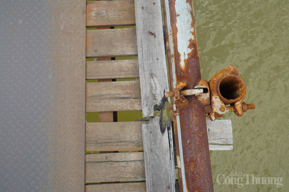| Do cầu được làm từ những thanh gỗ, trụ sắt, bê tông phía dưới rất yếu, mỗi khi có xe máy đi ngang qua, cầu rung bần bật, nên người dân cảm thấy bất an. Tuy nhiên, mỗi ngày vẫn có cả nghìn lượt xe đi qua cầu |
