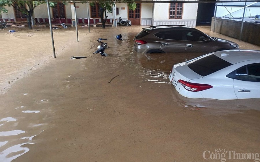 | Hàng loạt công sở trên địa bàn bị nước lũ tràn vào |