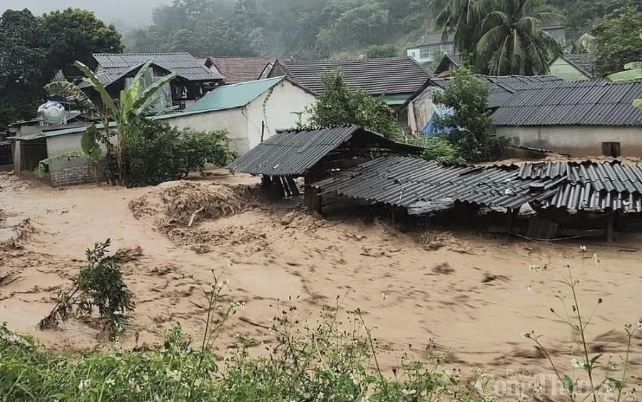 | Nhiều nhà dân đổ sập, chỉ còn đống đổ nát sau trận lũ quét |