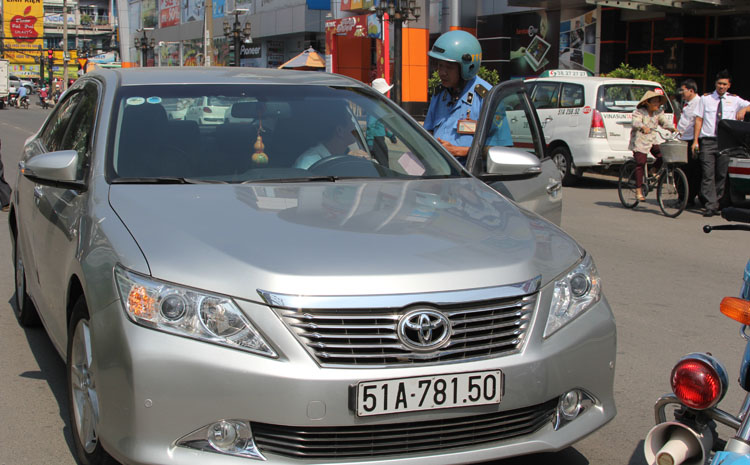| Thanh tra giao thông TP.Hồ Chí Minh kiểm tra một chiếc "taxi" Uber hoạt động trên địa bàn thành phố |