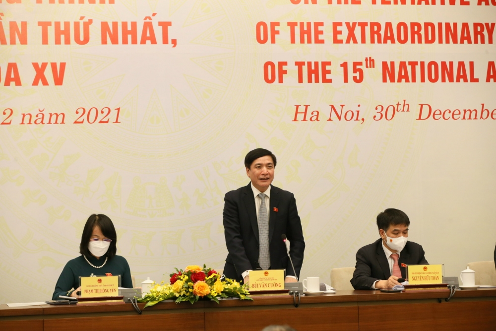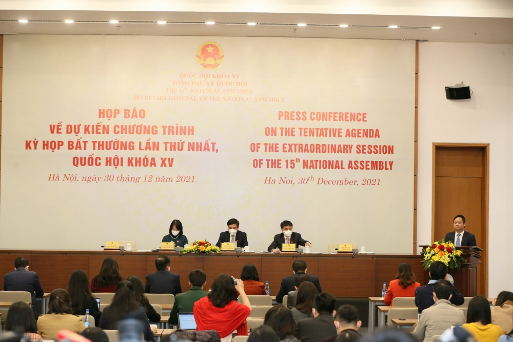 Tại buổi họp báo về dự kiến chương trình Kỳ họp bất thường lần thứ nhất, Quốc hội khóa XV, ông Vũ Minh Tuấn, Phó Chủ nhiệm Văn phòng Quốc hội cho biết, kỳ họp bất thường lần thứ nhất, Quốc hội khóa XV diễn ra trong bối cảnh cả nước đang nỗ lực triển khai thực hiện các nhiệm vụ chính trị để cụ thể hóa Nghị quyết Đại hội đại biểu toàn quốc lần thứ XIII của Đảng, Nghị quyết Hội nghị lần thứ 4 Ban Chấp hành trung ương Đảng khóa XIII, các Nghị quyết kỳ họp thứ hai, Quốc hội khóa XV; đặc biệt trong hoàn cảnh đất nước gặp những khó khăn, thách thức mới gay gắt hơn do dịch bệnh Covid-19 diễn biến phức tạp, khó lường tại nhiều địa phương trong cả nước.