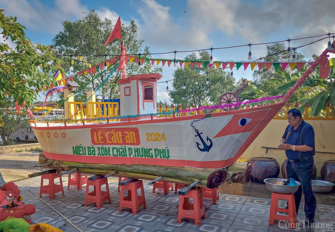 | Trong lễ cầu an, thuyền Tống ôn là vật biểu tượng quan trọng nhất. Thuyền được làm từ thân cây chuối, nan tre, giấy và được trang trí sặc sỡ. Con thuyền cũng là nơi được nhiều người dân địa phuơng đến gửi gắm niềm tin, ước nguyện của mình |