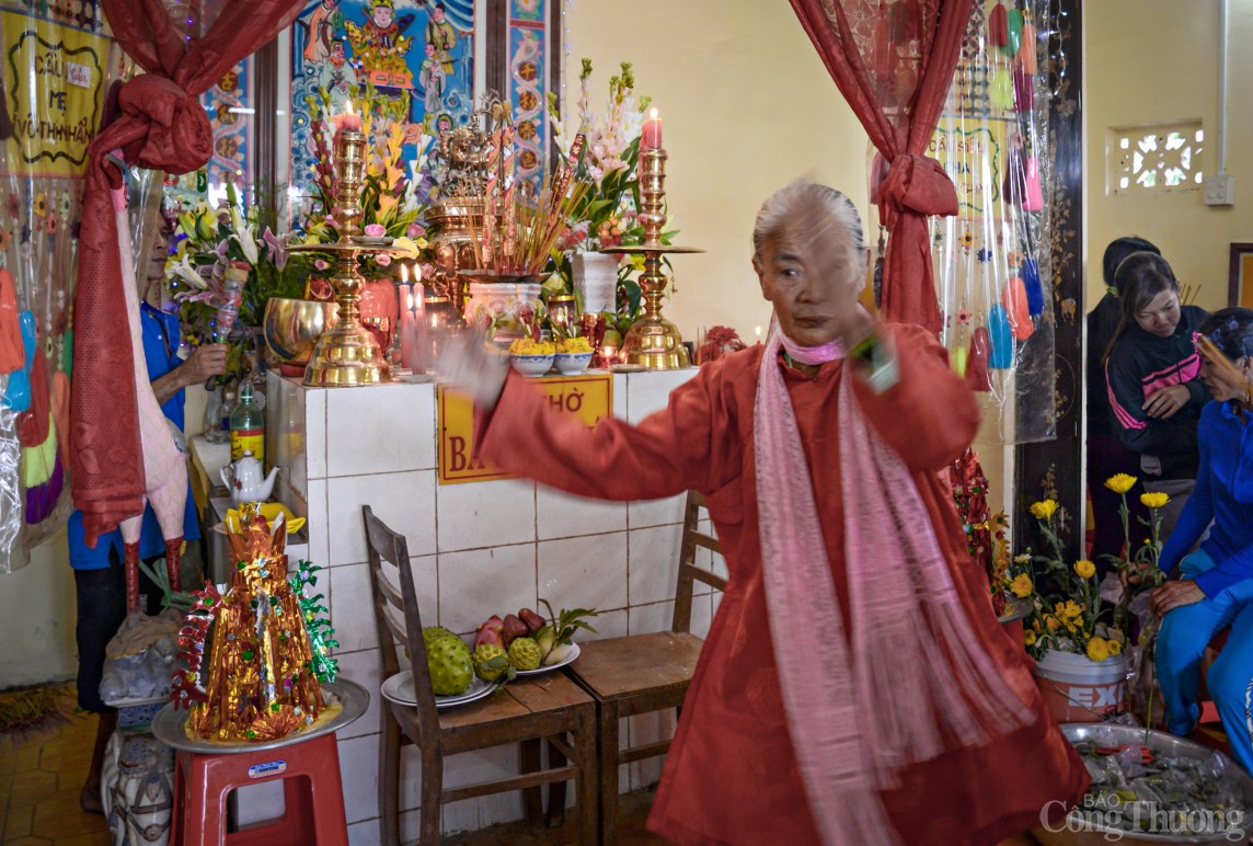 | Hầu hết các phần “lễ” đều diễn ra trong miếu với nhiều nghi thức tín ngưỡng, trong đó có hình thức “múa bóng” hiện nay ít người còn thực hành |