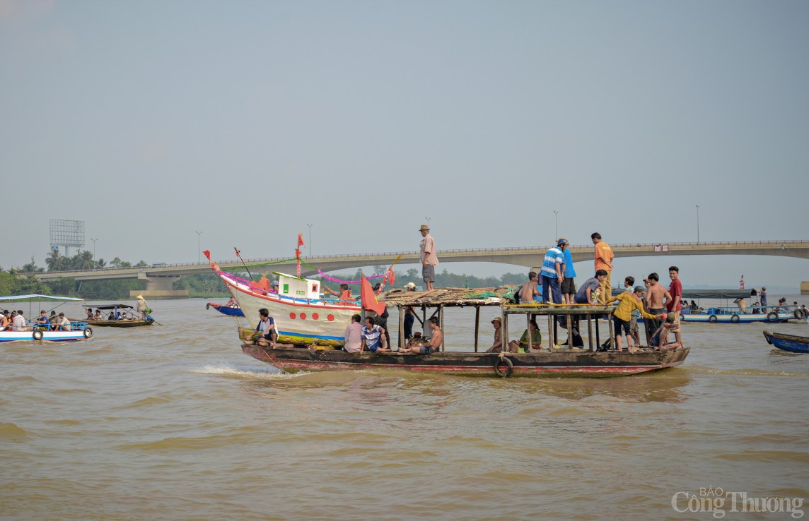 | Sau phần lễ, thuyền Tống ôn và các bài vị, linh vật được rước lên thuyền lớn để ra sông cái (sông Hậu) |