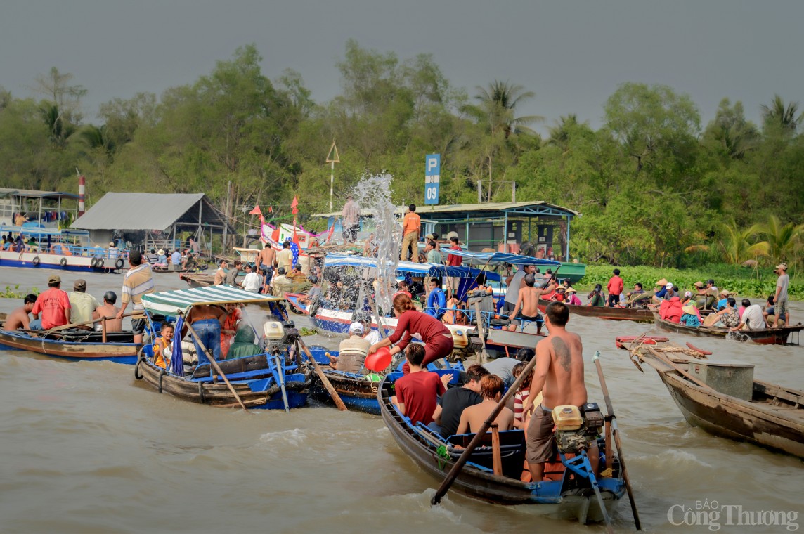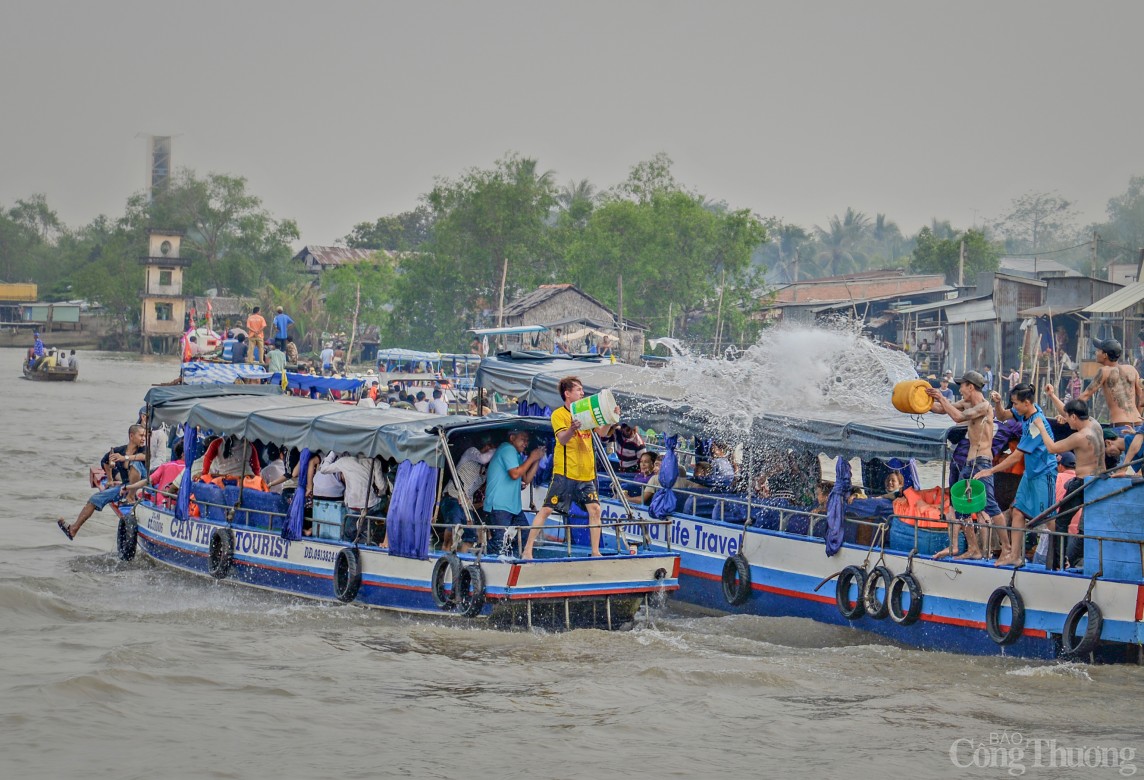 | Dọc hànhtrình tháp tùng thuyền Tống ôn, người tham gia té nước vào nhau để chúc năm mới vui tươi, làm ăn thuận lợi |