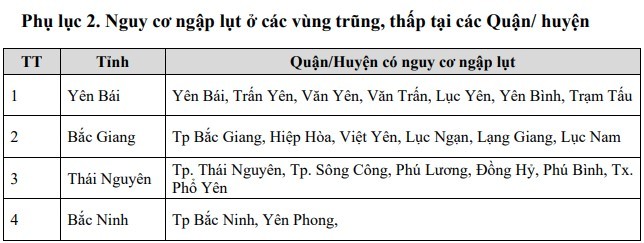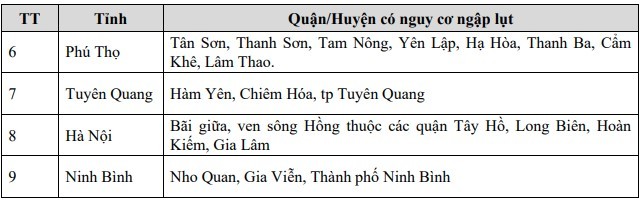 (Chi tiết huyện có nguy cơ ngập lụt trong Phụ lục 2)